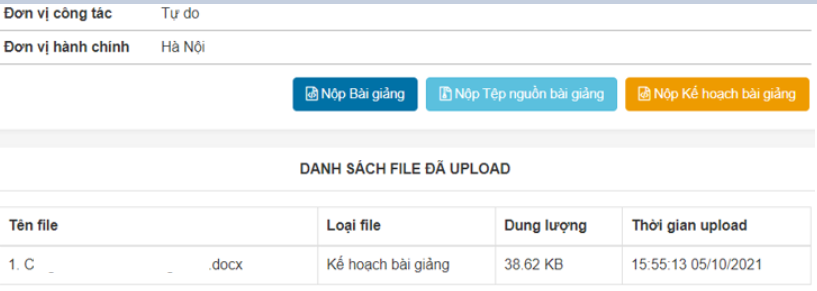 Sau khi file được đưa lên sẽ hiển thị phía dưới, các thầy cô lần lượt đưa đủ các file thành phần